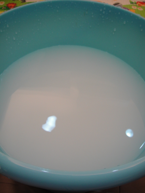 小冊子上說5公升的水對3瓶蓋黑肥皂,我用10公升的水對4瓶蓋,
